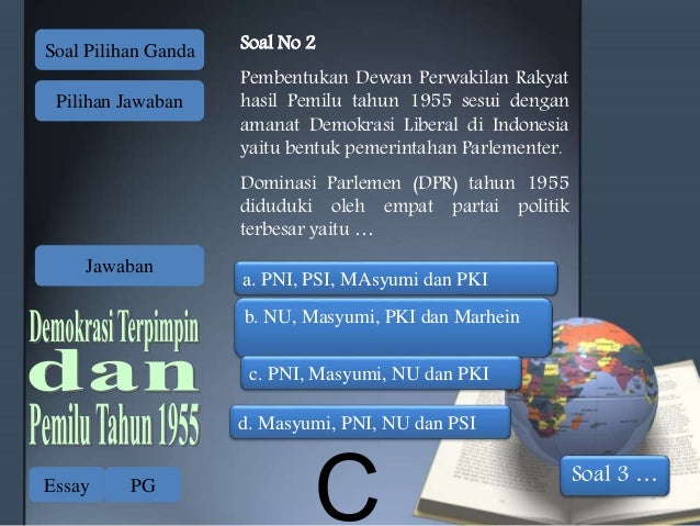 Soal pilihan ganda demokrasi terpimpin. Maybe you would like to learn more about one of these? We did not find results for: Check spelling or type a new query.